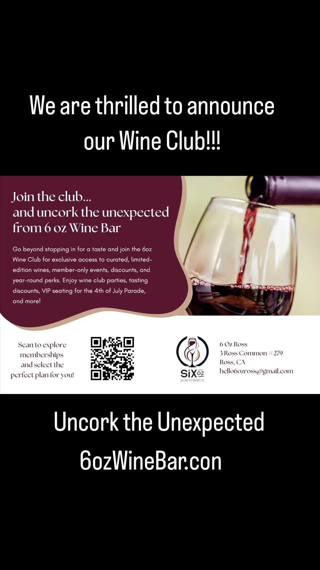 Welcome to 6 oz Wine Bar, a cozy and inviting retreat in the heart of Ross, California. Founded by two passionate individuals, Dena Bliss, a dedicated realtor and single mom from Marin County, and Adnan Daken, a seasoned expert with over 20 years of experience in the wine and hospitality industry, 6 oz Wine Bar offers an unforgettable experience for wine lovers. At 6 oz, we believe in quality and generosity which is why every glass of wine is a perfect 6 oz pour.